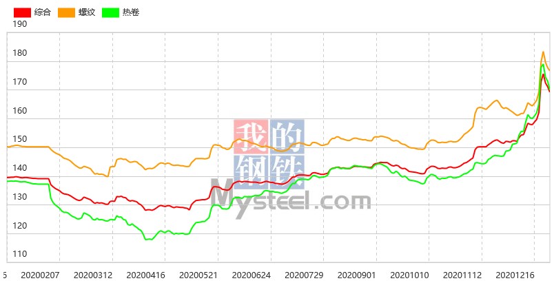 8日國(guó)內(nèi)建筑鋼材價(jià)格穩(wěn)中小幅上漲,現(xiàn)主要城市螺紋鋼均價(jià)4433元/噸,較上個(gè)交易日上漲11元/噸。具體來看,期螺震蕩走高,上午國(guó)內(nèi)建筑鋼材價(jià)格穩(wěn)中小幅拉漲。從成交來看,市場(chǎng)投機(jī)性需求減弱,下游采購(gòu)需求因寒潮天氣影響亦有所放緩。鋼廠方面,隨著需求的走弱,鋼廠出庫(kù)受阻,但考慮到原料成本居高不下,所以廠家挺價(jià)意愿依然較強(qiáng)。多數(shù)商家對(duì)后市行情持觀望態(tài)度,整體以積極出貨降低庫(kù)存為主。預(yù)計(jì)短期國(guó)內(nèi)建筑鋼材價(jià)格或繼續(xù)窄幅震蕩運(yùn)行。