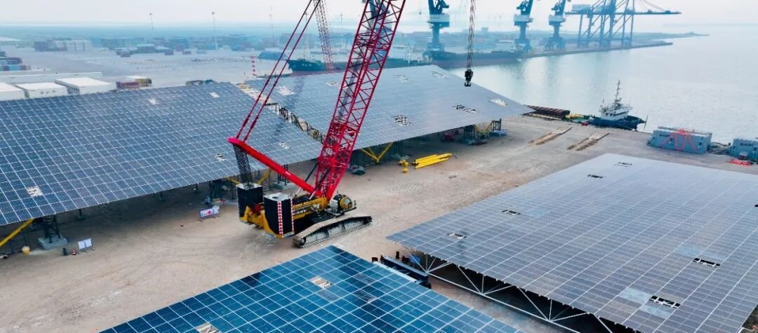 光伏堆場:在集裝箱堆場頂部鋪設(shè)光伏組件,為港口裝卸設(shè)備供電。上海洋山港光伏堆場項(xiàng)目年發(fā)電量超500萬度,減少柴油消耗150萬升;